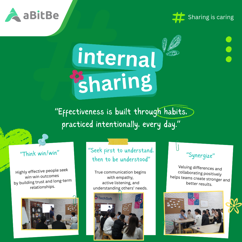 Last week, our team joined a knowledge-sharing session on “7 Habits of Highly Effective People”, facilitated by Huy Nguyen.